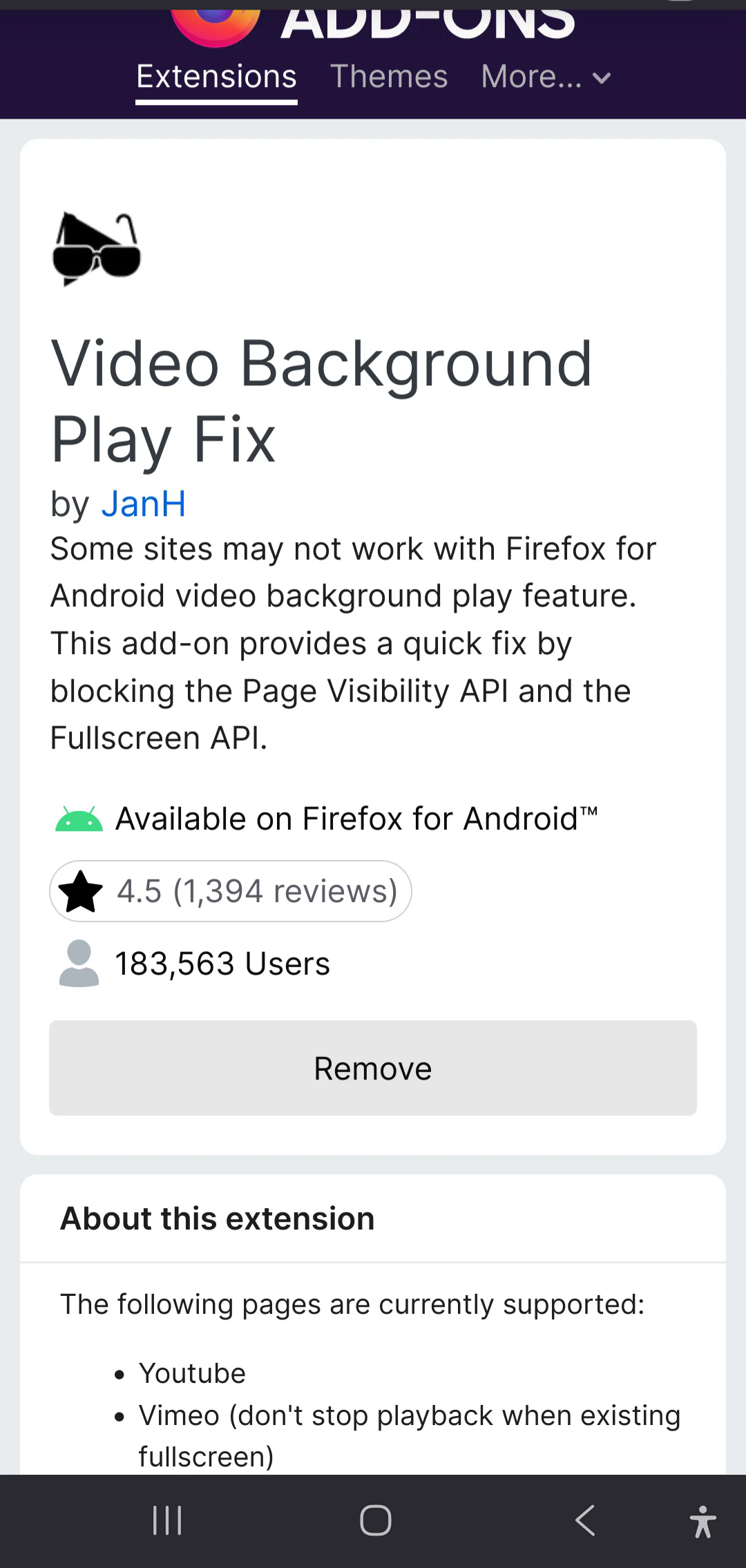 This extensions will allow you to fix issues in some sites where they don’t let you to play audio in the background